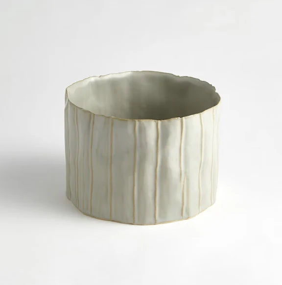 Paper Birch Pot has deckled edges, reactive sage colored glaze and is watertight.